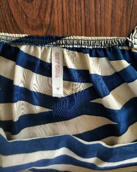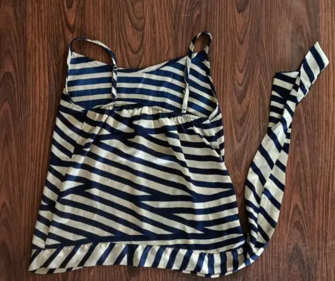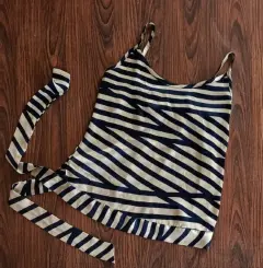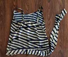 Lindo top beige con rayas azúl marino,tiene tiras de lado,la tela es como de satín y muy fresca. Es de tirantes, tiene resorte en la parte de atrás para mejor ajusteMedidas:Axila - axila: 37cmTirante - abajo : 55cm