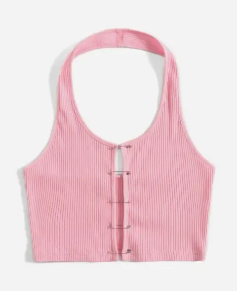 Top rosa con clips de moda. Talla L, queda bien a M también.