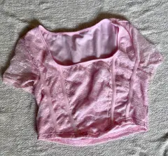 Top rosa con encaje. talla: chica medidas: busto (medida lineal) 33 cm, largo 36 cm