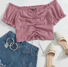 Top rosa viejo talla XL. Top rosa viejo fruncido con cordón para talla XL/1XL de shein