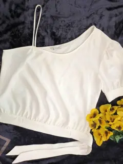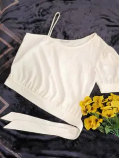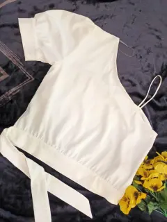 Top sin manga en color blanco lisa de vestir se puede usar formal e informal, elegante con cintas de la misma tela. Nueva.