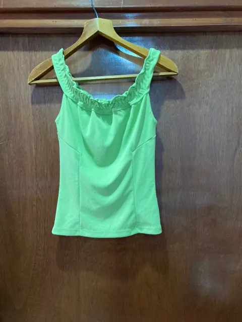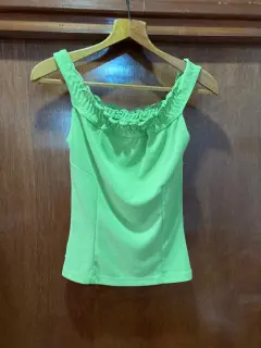 Top sin mangas. Top sin magas color verde meta , talla chica , tirantes de olanes.