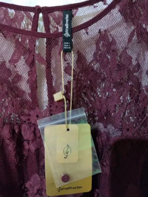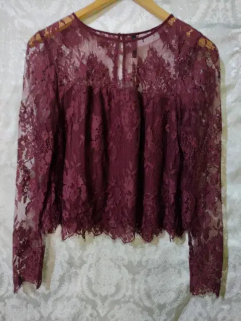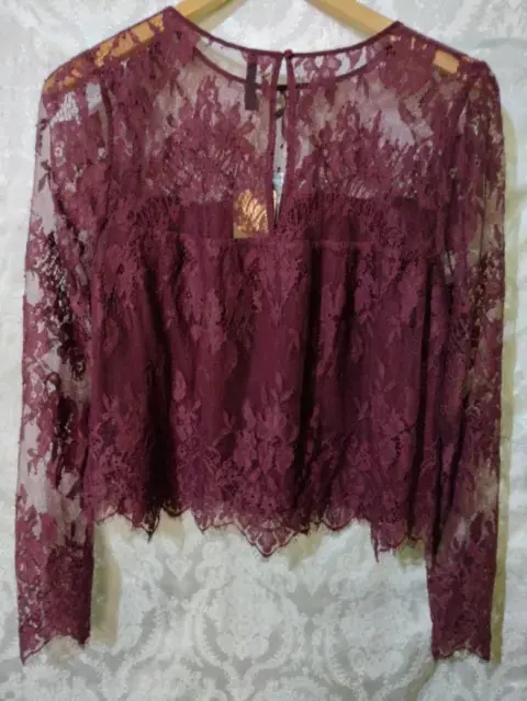 Top color vino de encaje completamente nueva, sin detalle y con botón de repuesto.