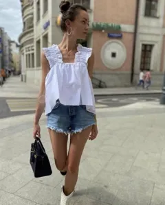 Top ZARA popelin. Hermoso top BLANCO con caída asimétrica y tirantes anchos. Muy bonito