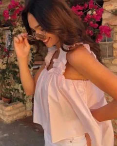 Hermoso top BLANCO con caída asimétrica y tirantes anchos. Muy bonito