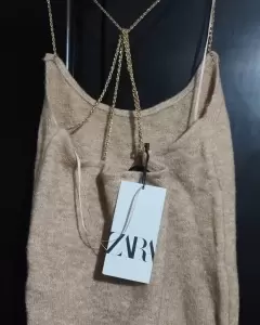 Tops café. Top con tirantes de cadena talla medianaEscote circularNuevo y con etiqueta