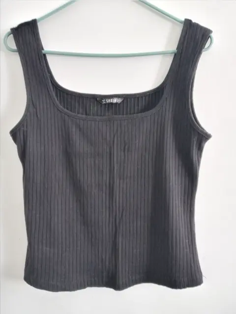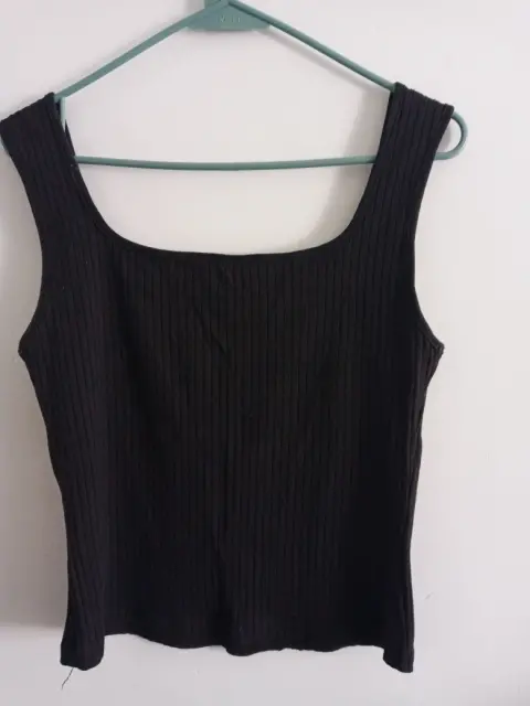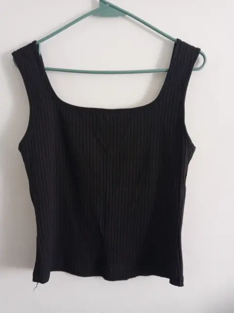 Toptank negro. Lindo diseño de top de tirantes en color negro, de canalé, entalla muy bonito al cuerpo y estira. Medidas: largo 51.5 cm Pecho 87 cm, composición 93% algodón 7% Elastano.Se ve igual que la foto. Super bonita y 100% recomendable.