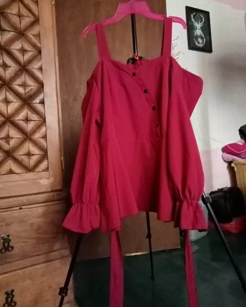 Vino. Bonita blusa de tirantes y mangas al hombro con encaje