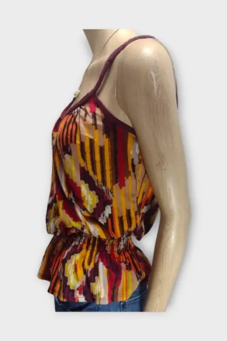 Xhilaration Blusa Poliéster Colores L. Xhilaration Blusa Dama Poliéster Colores LBlusa marca Xhilaration 100% Poliéster en colores tierraMarca: XhilarationOrigen: México Material: 100% PoliésterTalla: LEstilo: CasualPatrón: CasualColor: Colores TierraCierre: AbiertoPecho: 42 cmLargo: 48 cmHombro: 21 cmManga: Sin MangasRopa de USO en muy buen estado