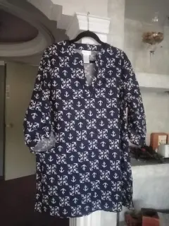 XL hermosa blusa.. Bella blusa talla XL azúl marino con blanco, tela bonita.