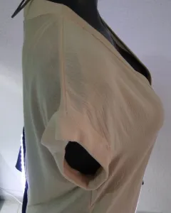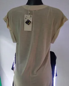 Zara blusa beige nueva, manga corta, cuello en V, talla mediana, sin detalles, es nueva.