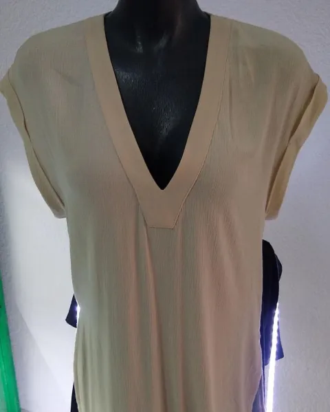 Zara blusa beige nueva. Zara blusa beige nueva, manga corta, cuello en V, talla mediana, sin detalles, es nueva.