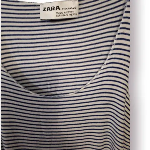 Zara Camiseta Ligera Rayas Azules, talla S- 28, si estira, la tela es super ligera.