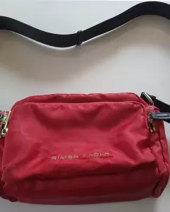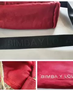 Bandolera BIMBA Y LOLA bolso cross body. Baldolera de naylon color vino tamaño mediano ancho 25cm aprox y altura 17cm aprox sin problema cabe tu cel cartera llaves y mas cositas,varios multibolsillos ,la aza esta logotipada con el nombre de marca la asa esta a un 100 esteticamente ,sus cierres son de cremallera color negro,tiene detallez de uso como todo articulo usado, si ocupas una foto o dato en especial con gusto te ayudo
