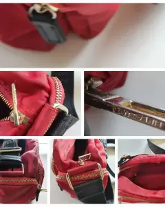 Baldolera de naylon color vino tamaño mediano ancho 25cm aprox y altura 17cm aprox sin problema cabe tu cel cartera llaves y mas cositas,varios multibolsillos ,la aza esta logotipada con el nombre de marca la asa esta a un 100 esteticamente ,sus cierres son de cremallera color negro,tiene detallez de uso como todo articulo usado, si ocupas una foto o dato en especial con gusto te ayudo