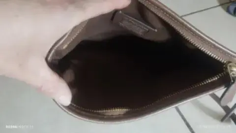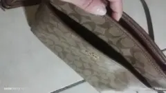 Es una bella bolsa crusada bandolera o mensajero monogram COACH ,café herrajes dorados correas y detalles en piel, pasa mil x nueva solo que la preste y me la regresaron raspadita de esquinas, en realidad pasan desapercibido y son muy pequeñitas, fuera de eso está perfecta y hermosa!