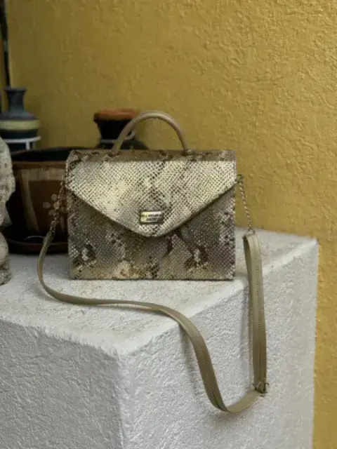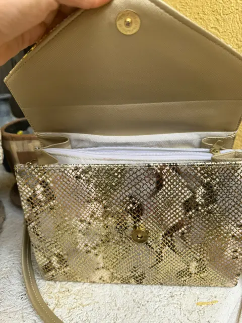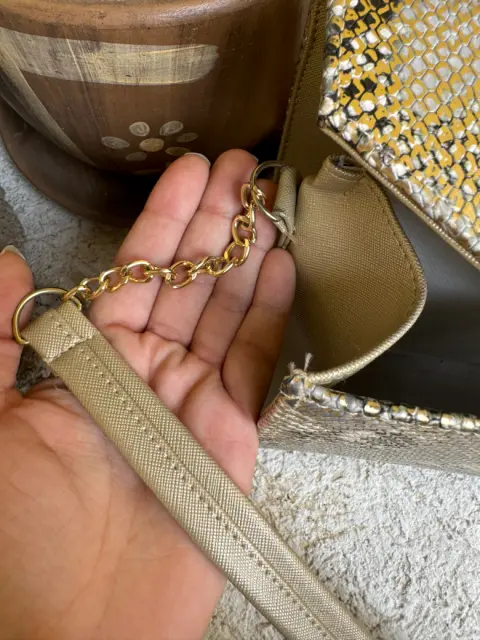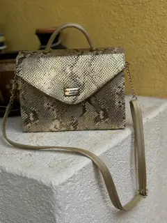 Bolsa animal print metálica. Es una bolsa rígida,no se deforma. El diseño está hermoso, es metálico, brilla y resalta mucho.