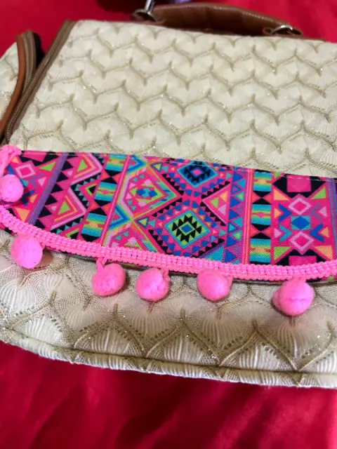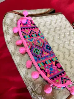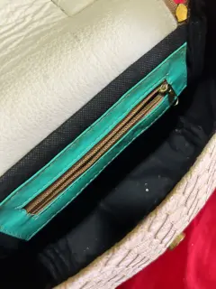 Preciosa bolsa artesanal de colores, su único de recto es que está un poco manchada en la parte de atrás, lo demás está en excelentes condiciones