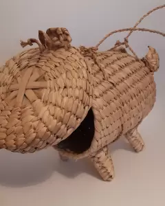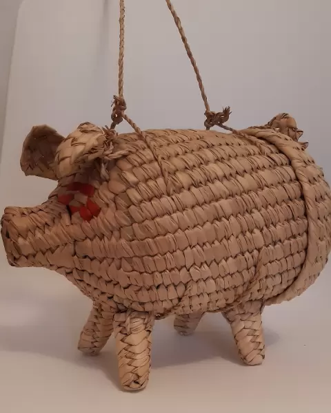 Bolsa artesanal de palma. Figura puerquito.En muy buen estado No tiene ningún detalle Medidas Alto 21cmLargo 25cm Ancho 17cm