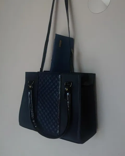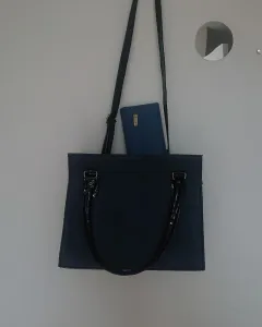 Bolsa azul. Bolsa 2 en 1 se puede colgar trae su correa o puede quitarse y utilizarse de mano nueva no se uso incluye carterita super práctica y amplia