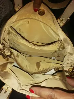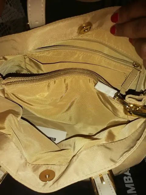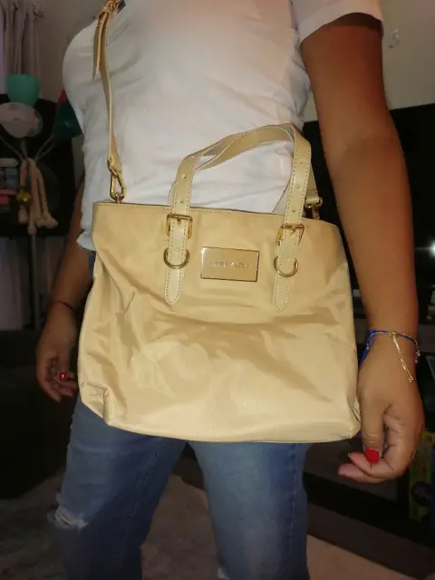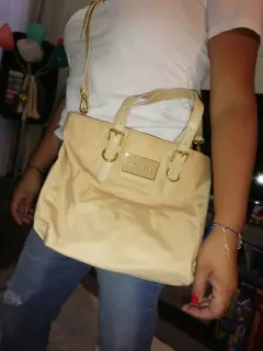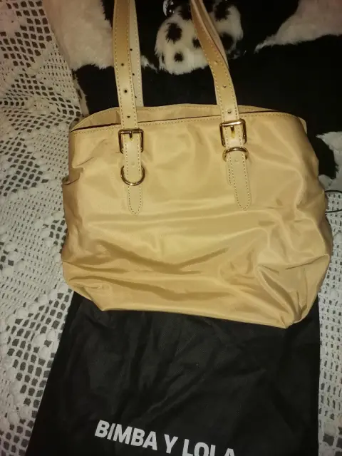 Linda bolsa de nylon Bimba y lola nueva color beige, cómoda y con compartimentos, herrajes dorados y asas ajustables