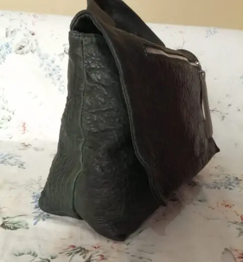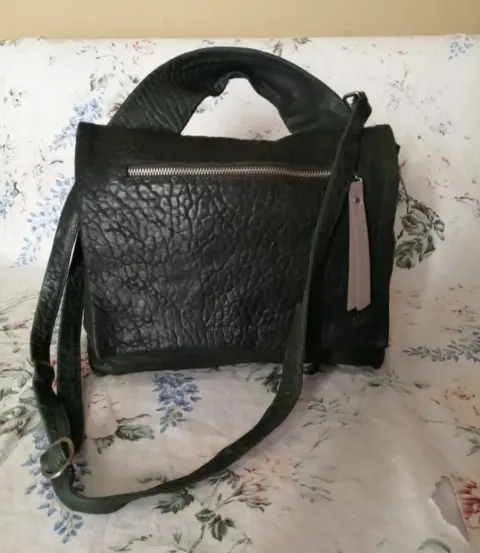 Bella bolsa de piel de elefante,, super resistente, excelente calidad,, modelos exclusivos de diseñadora israelita Daniella lehavi,,, super originales, en perfecto estado, color verde musgo,, puede usarse como maletín o con el crosbody cruzada