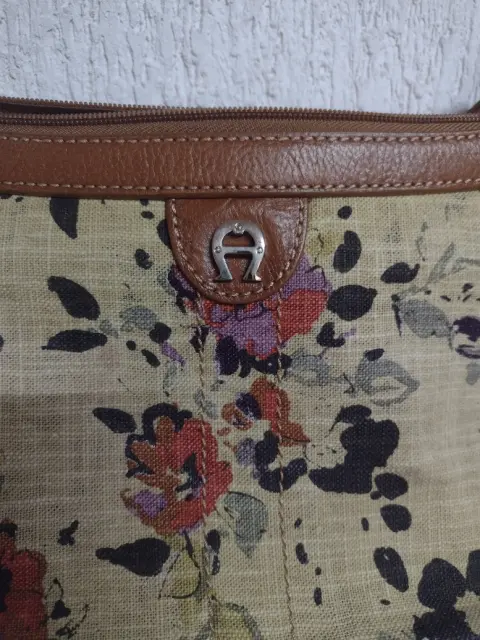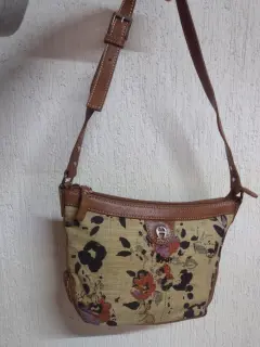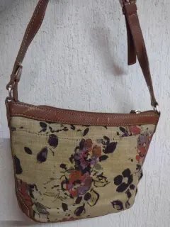 Bolsa estampada. Con aplicaciones de piel y en perfectas condiciones de buena marca.