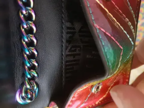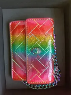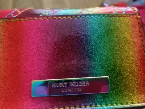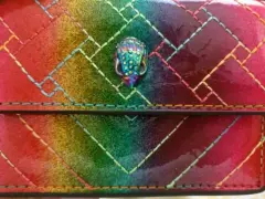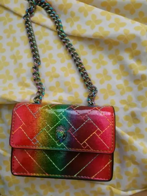 Bolsa kensington Kurt geiger. Bolsa micro kensington piel con efecto glitter strap color tornasol,emblema la cabeza del águila en azul con piedritas de colores,ideal para elevar tu outfit