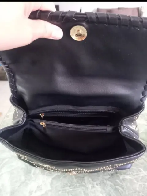 Bolsa marca Map , color negra con estoperoles dorados y cadena, la puedes llevar al hombro o crossbodyUsada 3 ocasiones, está prácticamente nueva