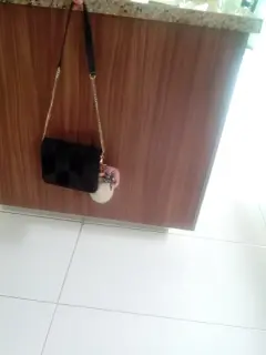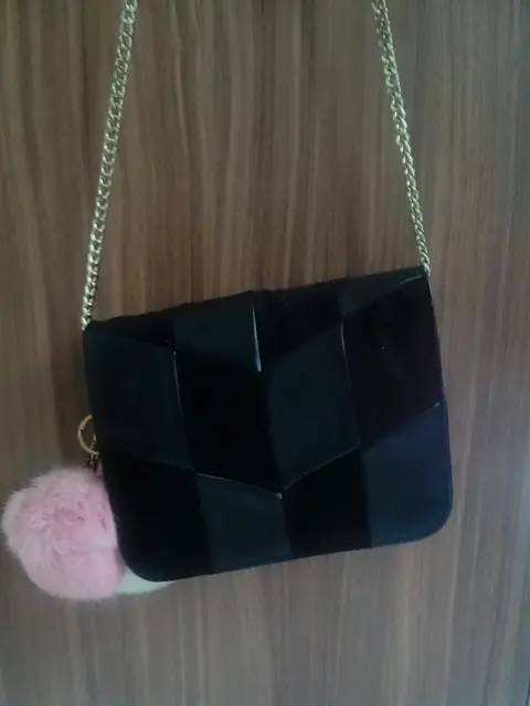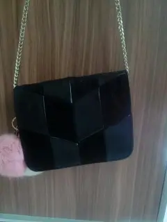 Bolsa negra. Bolsa negra de cuero,parte de piel y parte gamuza,también contiene llaveros