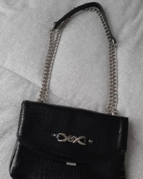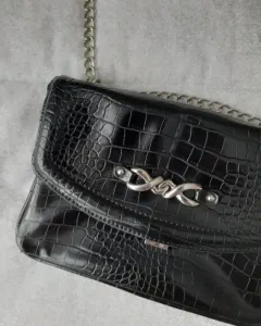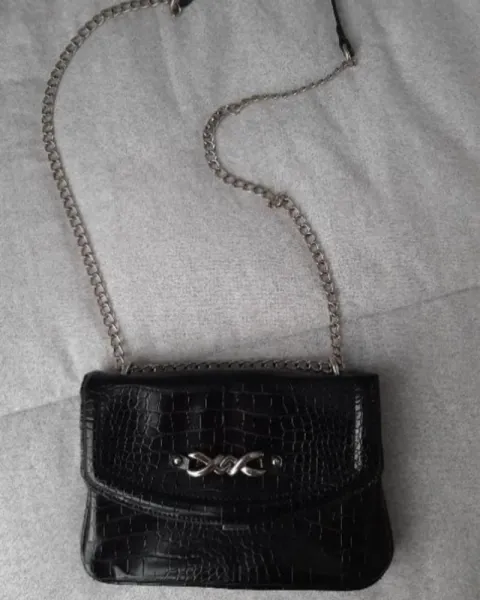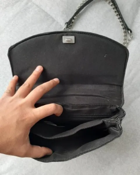 Bolsa Negra cruzada. La correa es ajustable se puede usar larga o corta como se muestra en las fotos o se puede meter la correa completamente y usarla como clutch.