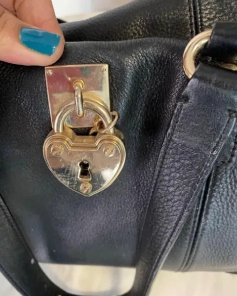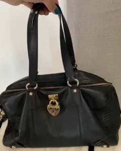 Bolsa negra de piel. Hermosa bolsa negra de piel, Juicy Couture, se puede usar como crossbody, en el brazo, hombro, etc está hermosa y aún tienen mucha vida. Ligeros detalles de uso que se ven en las últimas fotos
