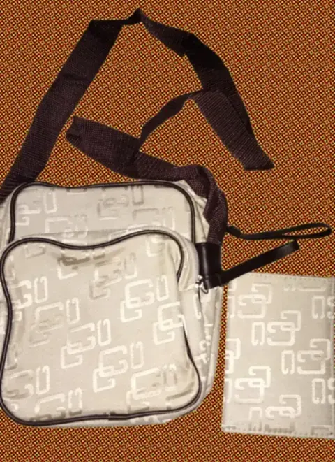 BOLSA PEQUEÑA CON CARTERA. Linda bolsa con cartera, beige con café. Tiene adornos de cuadros dorados. Tiene asa grande y dobles bolsillos. Tiene bolsillo con cierre por dentro.La cartera tiene espacios para tarjetas y billetes.Bolsa 22x20x10 cmCartera 14x10 cm