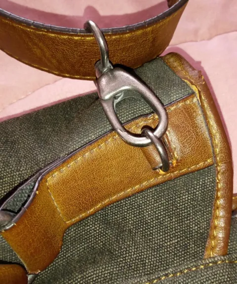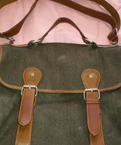 Bolsa portafolio Zara de mezclilla gruesa color verde, está en muy buenas condiciones, tiene forro, sus botones y correas completas, tiene un poco de desgaste en correa y borde dela bolsa, anexo fotos.