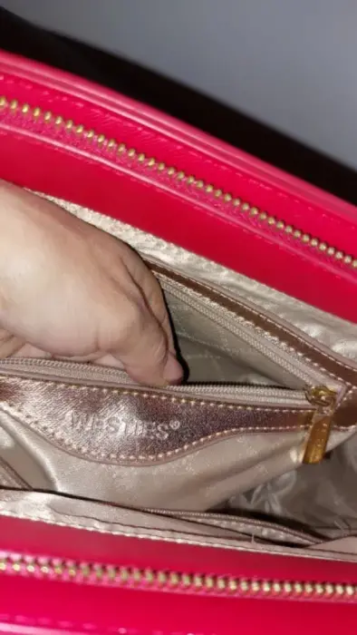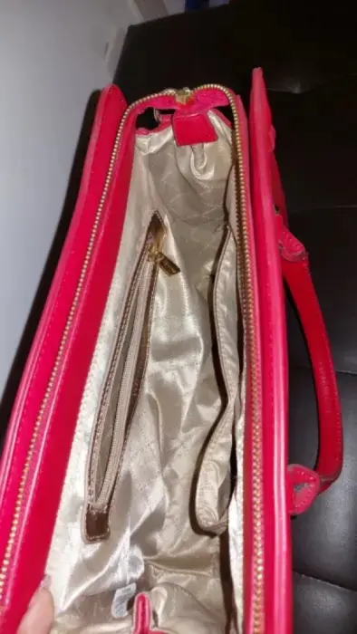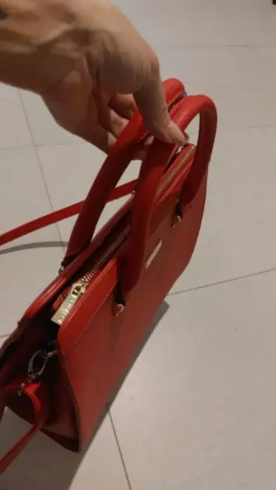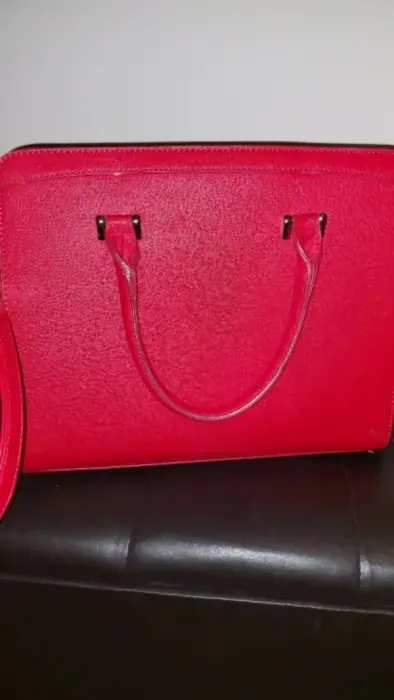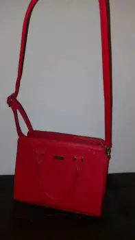 Hermosa bolsa color rojo ,amplia, usala de mano o trae correa para usarla en hombro,cruzada... Se uso solo una vez! Detalle:tiene un pequeño rayon en la parte de atras, como d lapiz de ojos que talvez limpiandola se le quita(no le he intentado) super bonita y a super precio !!!