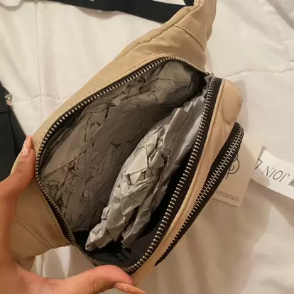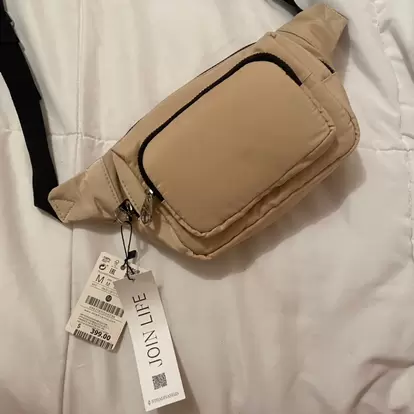 Bolsa tipo cargo/canguro beige. Bolsa ideal para tu outfit 😍▫️ Bolsa impermeable tipo cargo▫️ Color beige con ▫️ Marca stradivarius ▫️ Con cierres en negro con plateado▫️ Correa negra ajustable ▫️ Medidas: 30x13 aproximadamente