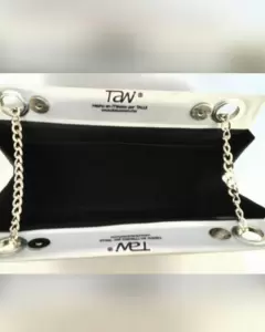 Bolsa Vante en tela tipo raso, mod BELLAS ARTES, inspirada en el Palacio de Bellas Artes de CDMX, en base color GRIS y tonos NEGRO y GRISES, c/herrajes tono plata brillante. Cuenta c/compartimiento principal c/bolsillo interior sencillo, cierre mediante snaps. Exterior: tela tipo raso 100% poliéster, forro: vinil seda 100% poliéster. Dimens cms: 26.5 largo, 25.5 alto, 11.5 profundidad.