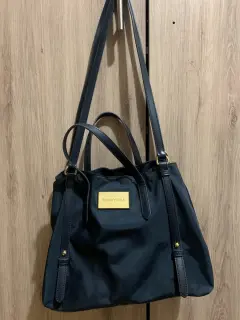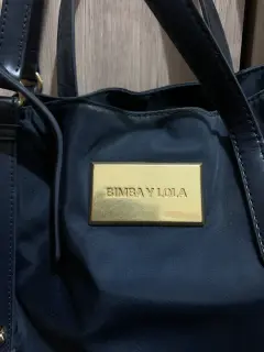 Bolso Bimba y Lola. Bolso Bimba y Lola azul marino tiene tres compartimentos, dos cierran con broche y uno con cierre. La placa con el logo está un poco yaya da y tiene una raspadura en la parte de atrás que se muestra en la foto.