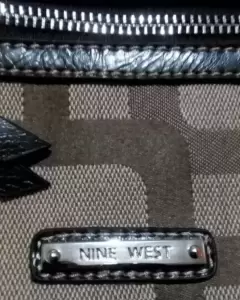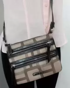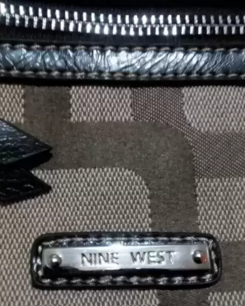 Bolso cross body Nine West en color café/kaki, 3 compartimentos, cierres color plata, 18 cm de largo y 23 cm de ancho..