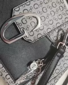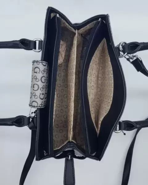 Hermoso bolso pequeño para llevar lo esencial, tiene asas cortas y una larga regulable, con llavero y diseño con logotipos guess hermosoMedidas: 31 x 12 x 19.5 cm