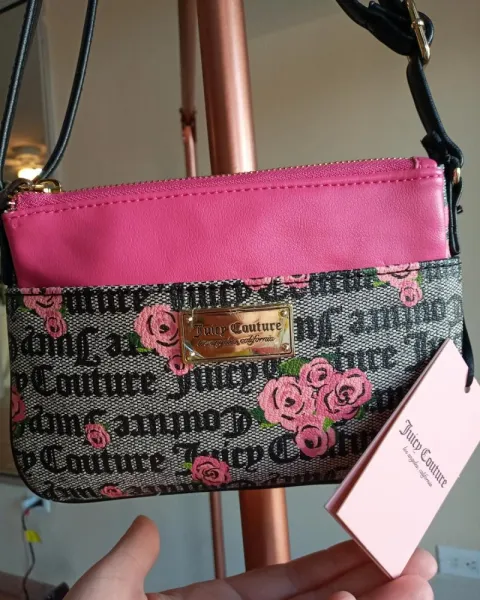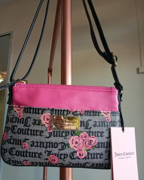 Hermoso bolso juicy couture nuevo y original con etiquetas.2 en 1 por ser el área color rosa un monedero que se quita o se pone a tu gusto para poder salir solo con tu monedero o como viene en la foto monedero y bolsa amnos grabados con la.marca juicy couture.Hago envios inmediatos