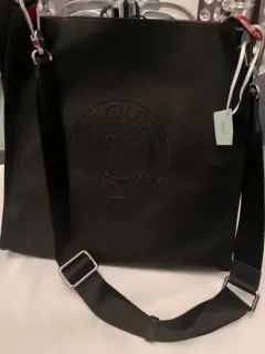 Es una bolsa original marca Tous, nueva, con etiquetas, traída de España, realizada en piel negra con vino, y jareta ajustable, grabada con el nombre de la marca