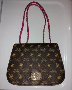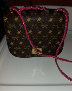 Bolso tipo polo. Bolso de un solo compartimento grande el aza se acomoda larga o cortas café negro con rosa...nueva!
