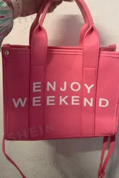 Bolso cuadrado Letter Graphic rosa Barbie,inspirado en el tote bag de Marc Jcobs,muy espaciosa,bolsillo interno,medidas 21 alto,27 largo 11 profundudad,aca larga para utilizar cruzado.