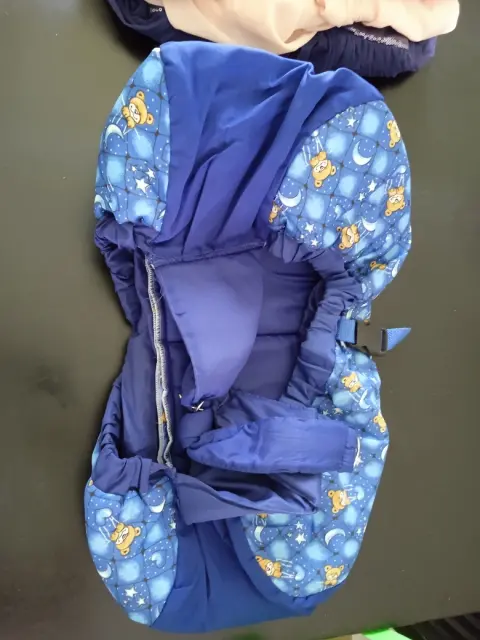 Canguro de bebe. Canguro de bebe color azul con osos con arnés para auto ajuste