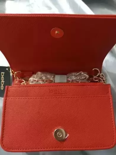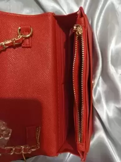Crossbody bebe roja😍💋. Crossbody bebe original💗Tipo piel, con solapa y cadena acabado dorado💛cuenta con cierre interno, división para tarjetas y otro espacio para celular💖súper práctica💖medidas 20cm×15cm×4cm💖