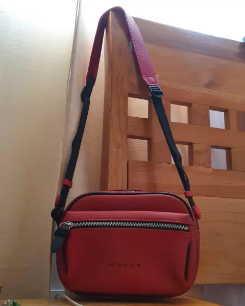 Lindo crossbody Huser, es amplio y no tiene detalles, solo lo use un par de veces