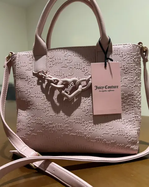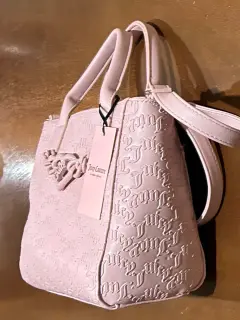 Crossbody Juicy color rosa. Crossbody con agarradera corta y correa larga. Estampado en relieve con holograma de la marca. Tres compartimentos interiores y un compartimento exterior con broche. Medidas 22 cms de frente 21 cms de alto 10 cms de profundidad.