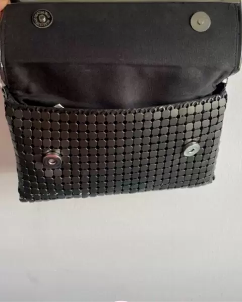 Crossbody Metalica TodoModa. La bolsa esta hecha de metal por fuera y forrada en tela, mide 13 centímetros de alto y 22 cm de ancho, está en excelente estado, solo tiene pequeños rayoncitos en algunos cuadritos de metal pero por cámara no se logran ver.