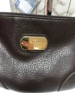 Crossbody Tommy Hilfiger. Crossbody Tommy Hilfiger Color café interior azul limpio Detalle placa rayada y un rayón al frente y las asas, ver fotos, con mucha vida